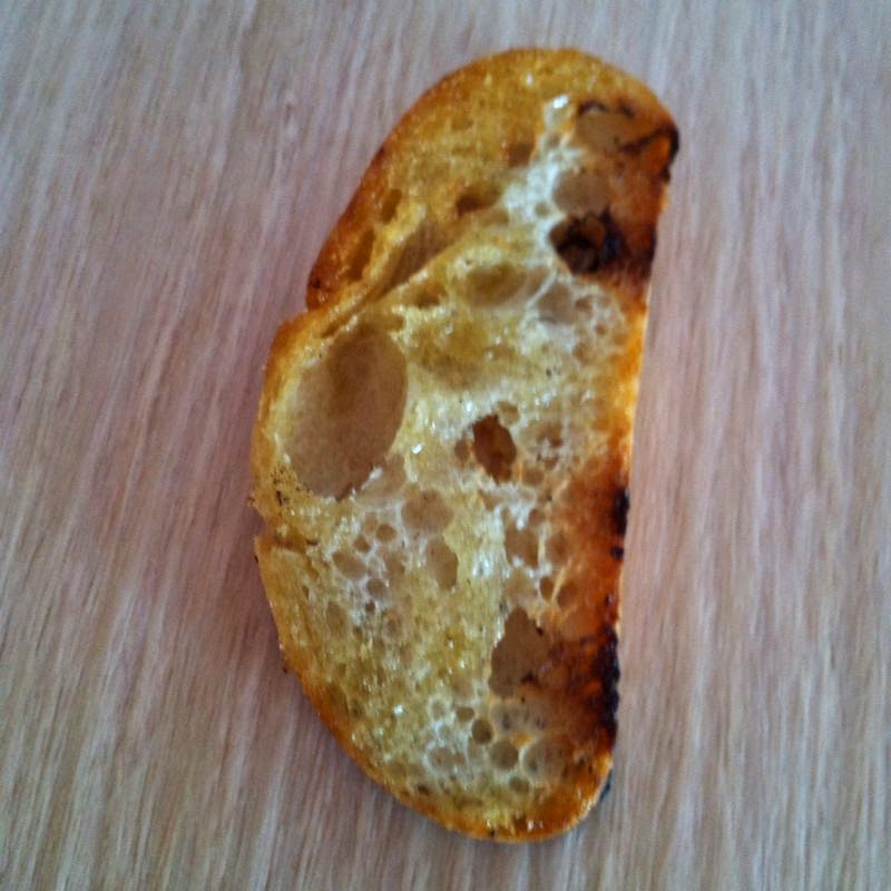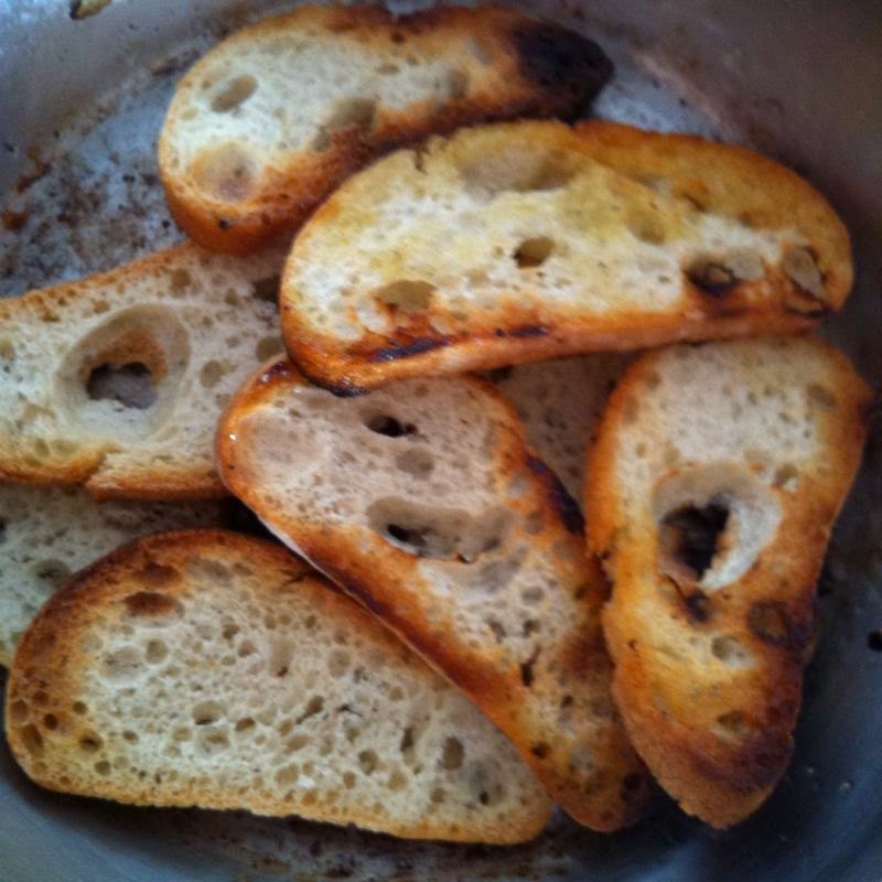 Y pasaremos las rebanadas de pan por esa misma sartén, para calentarlo un poco en caso de que este frío.