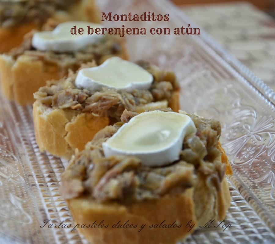 Se trata de unos riquísimos montaditos de berenjena y atún con queso de cabra y os aseguro que no se nota nada el sabor de la berenjena.
