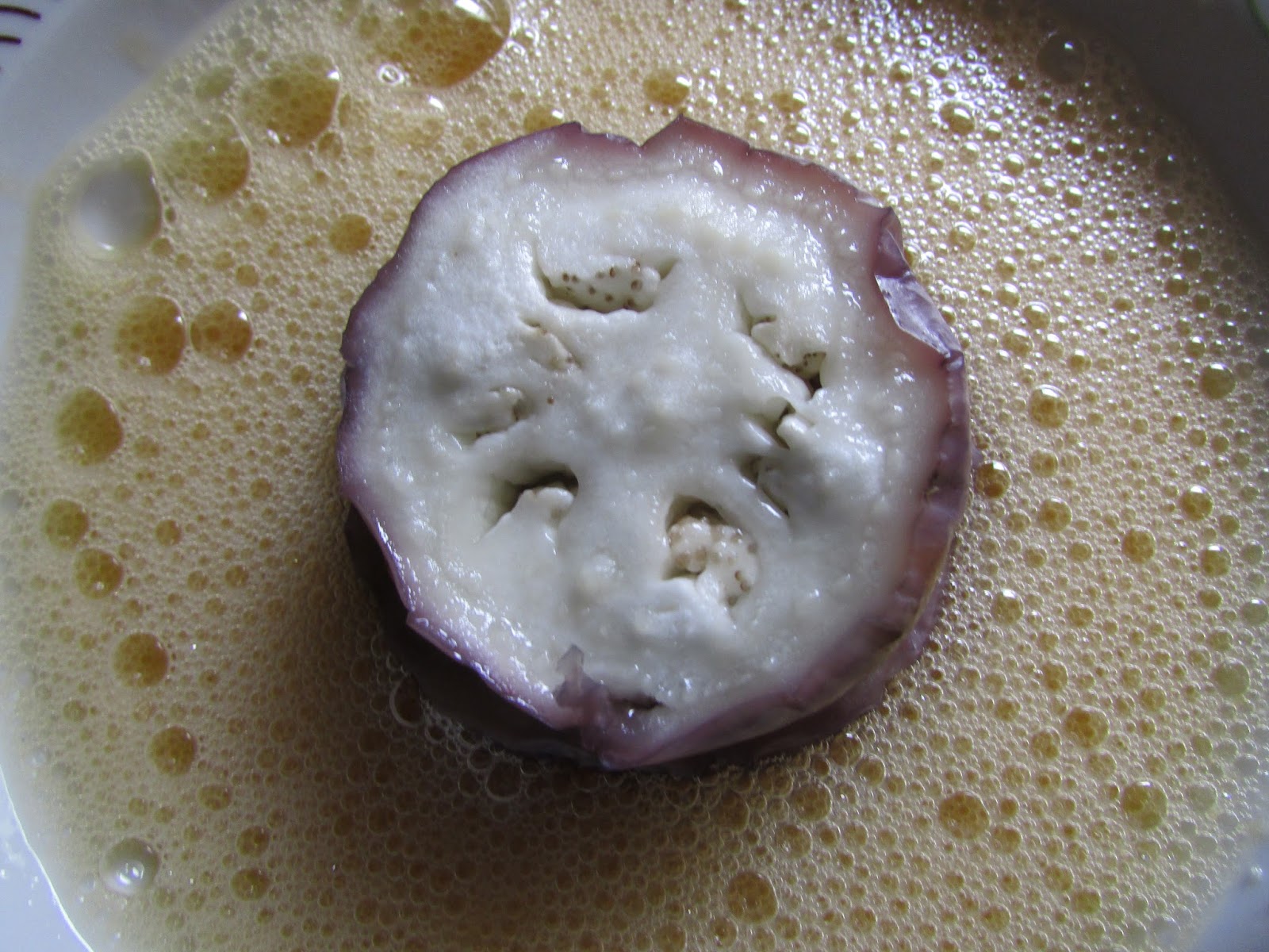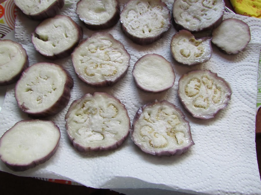 Una vez cocidas colocamos las rodajas de berenjena sobre papel absorbente.