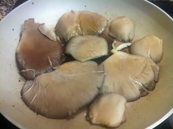 En la misma sartén, echar un poquito más de aceite si fuera necesario, y poner las setas a cocinar a la plancha a fuego alto. Echar un chorro de vinagre sobre las setas y salpimentar. Cuando estén hechas las setas, reservar.