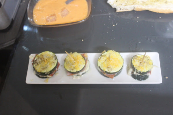 Realizamos en una de las caras de cada rodaja de calabacín unos cortes por una de sus caras (sin llegar a cortar la rodaja), para que se impregnen bien de la mezcla que tenemos preparada.