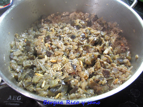 5. Dejamos pochar tapado, removiendo de vez en cuando, hasta que quede con la textura de un pisto.