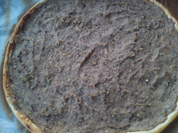 Le he untado la morcilla de verano que sobró, le he espolvoreado un poco de orégano y al horno precalentado a 200 grados 25 minutos.