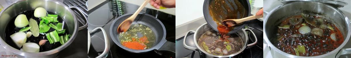 Poner las alubias negras a remojo en agua fría la noche anterior.