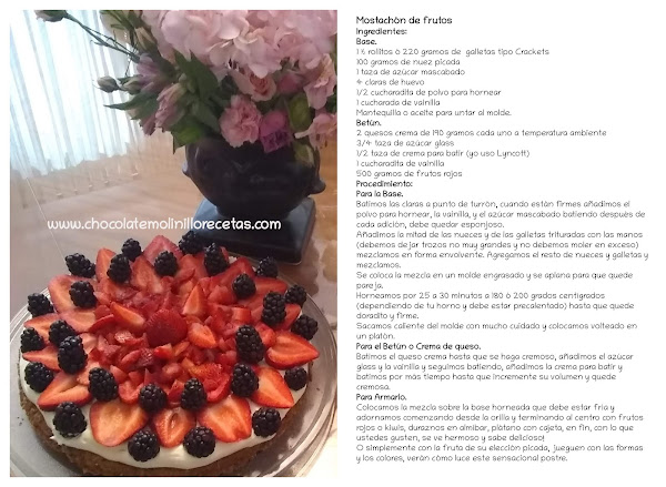 Es un dulce muy versátil pues puedes cubrirlo con la fruta de tu elección, duraznos, kiwis, fresas, zarzamoras, frambuesas, plátano con cajeta y chocolate, en fin, tú decides.