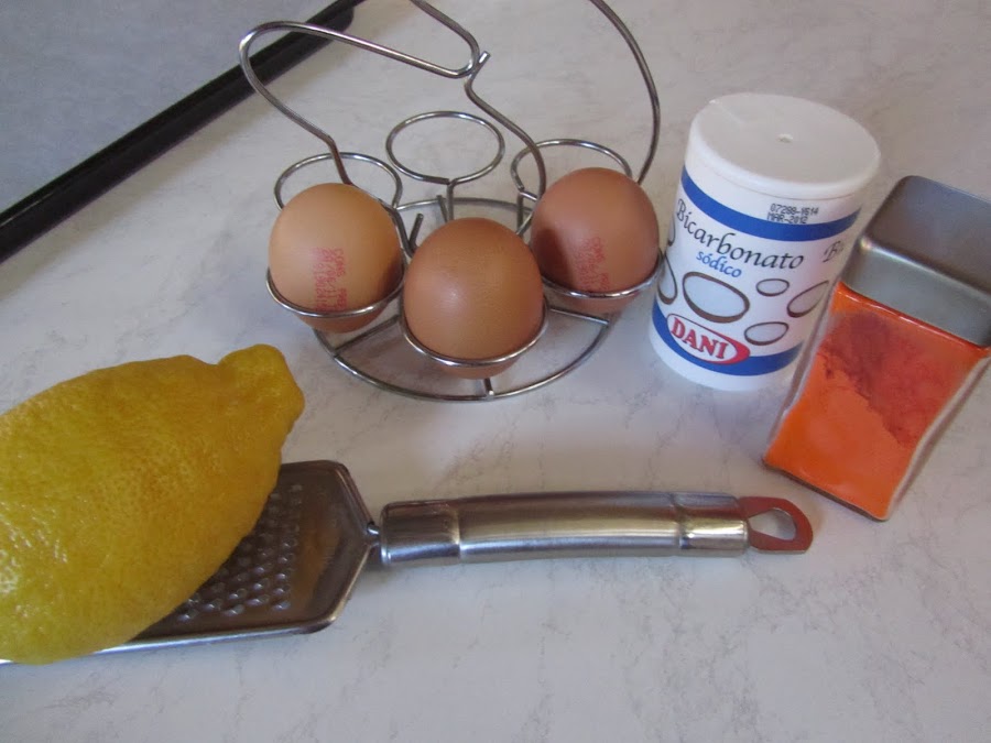 HUEVOS, BICARBONATO, COLORANTE Y RALLADURA LIMÓN.