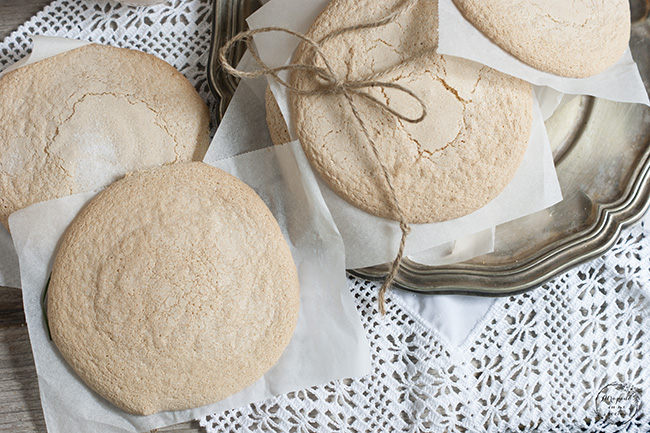 El mostachón de Utrera es un bizcocho plano típico de la localidad sevillana del mismo nombre. He visto varias versiones por la red, algunas con levadura y otras sin ella, como ésta que he elegido para preparar y que encontré en el blog Julia y sus recetas. Se caracterizan por su forma aplanada y delgada y por ir pegadas al papel de estraza donde se hornean, aunque yo lo he puesto en papel vegetal.