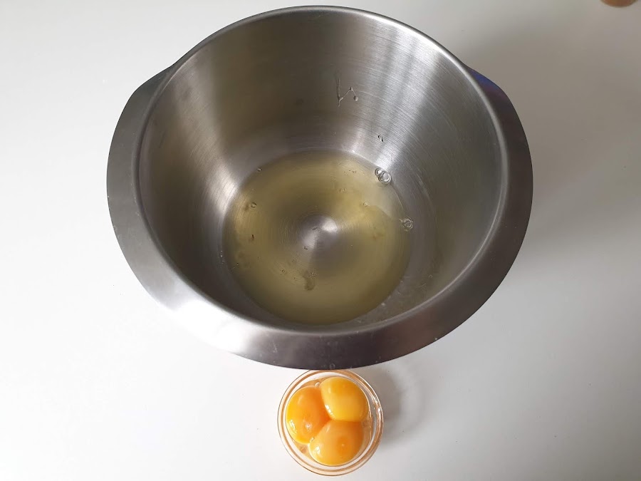 1. - Comenzamos encendiendo el horno a 180º. Y separamos las claras de las yemas.