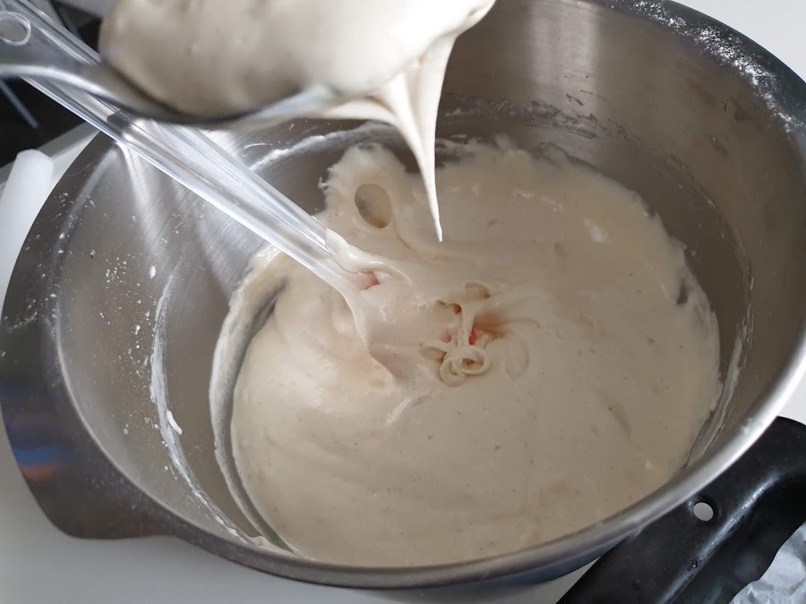 3. - Y por último, tamizamos la harina con la canela y la mezclamos todo bien con una espátula, que quede una masa fina.