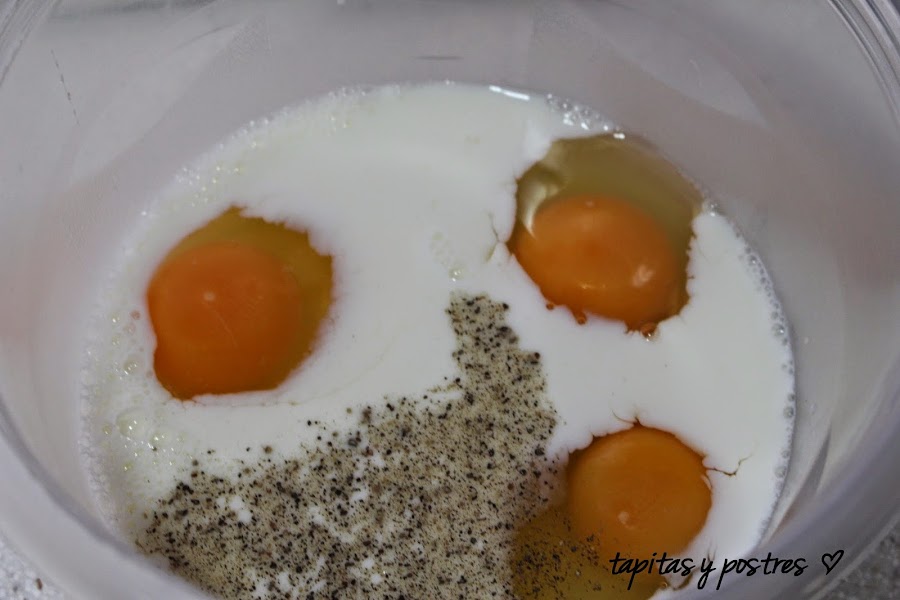 En un bol, batimos los huevos con la leche y lo salpimentamos al gusto.