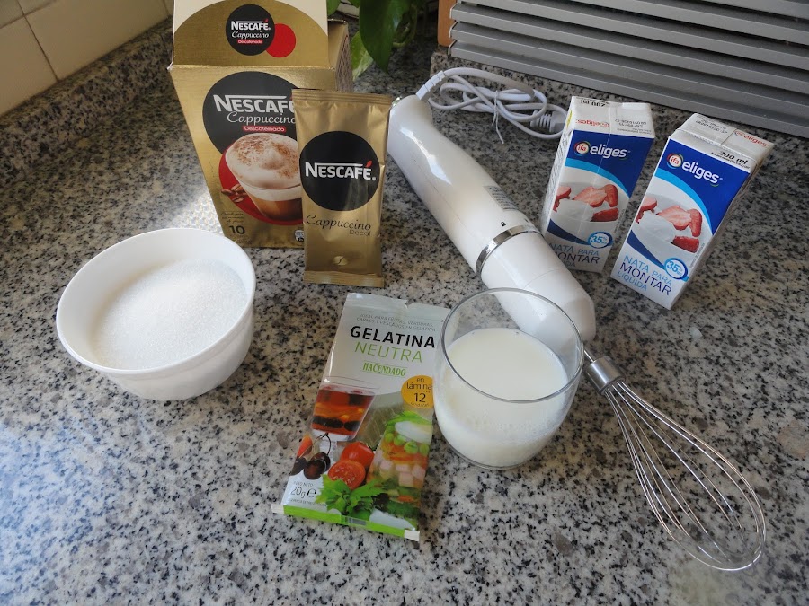 1 sobre de nescafé ( yo he utilizado el nescafé descafeinado Cappucchino de la caja DISFRUTABOX de este mes, y una cucharadita más de nescafé descafeinado para que diera un color más tostado, porque el capuchino es más clarito