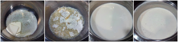 Salsa bechamel (leche entera, mantequilla, harina, nuez moscada y sal)Empezamos preparando la bechamel. En un cazo derretimos una cucharada generosa de mantequilla, incorporamos la misma cantidad de harina y mezclamos bien para que la harina se cocine y pierda el sabor a crudo. Vertemos la leche (unos 500-600 ml) y removemos hasta que espese. Rallamos nuez moscada y sazonamos al gusto. Cuando la tengamos lista, tapamos con papel film (para que no se reseque la capa de arriba) y reservamos. Para ver el paso a paso de cómo prepararla pincha aquí.