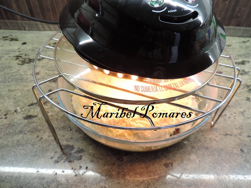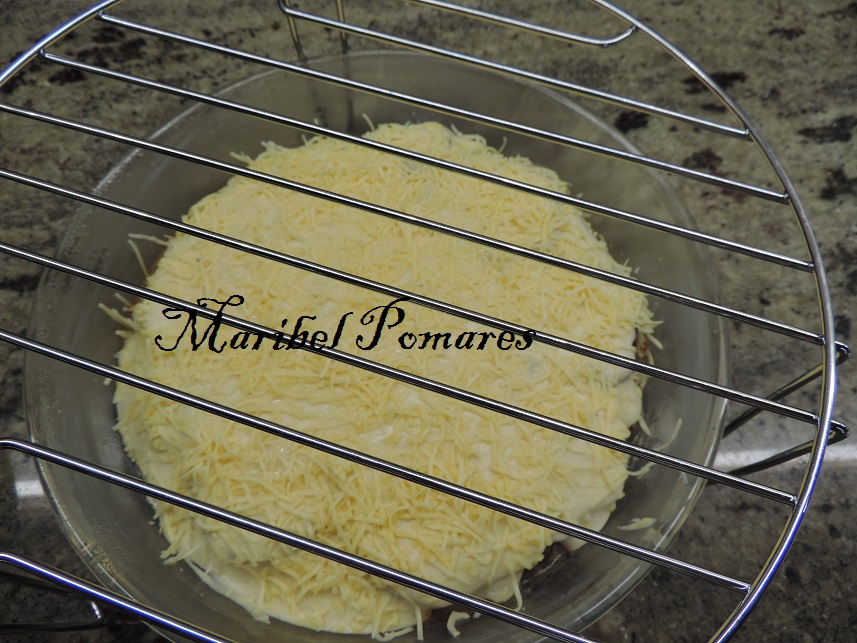 Yo he puesto la rejilla del microondas, para probar ha gratinar el queso con la tapa doradora de la olla programable y así me ahorro de poner el horno.