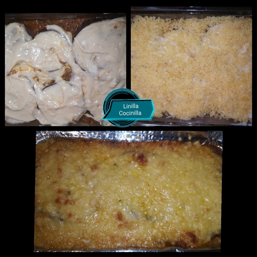 - 3 berenjenas con piel cortadas en rodajas de 1 cm