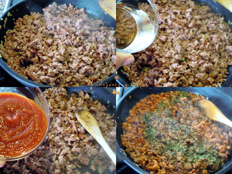 Ves alternando capas de carne y berenjena hasta terminar con una de carne.