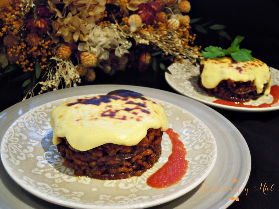 No hace falta que la hagas individual en un plato con molde, también puedes hacerla directamente en una fuente de cristal grande, como si fuera una lasaña.