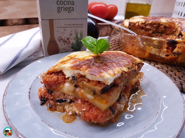 De las islas, me traje un pequeño recetario de cocina griega en español, entre las recetas esta la famosa mousake griega de carne.