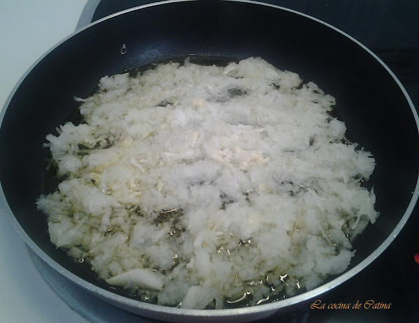 Mientras ponemos una sartén en el fuego con aceite y empezamos friendo la cebolla y el ajo pelados y picados, a fuego lento durante 10 minutos.