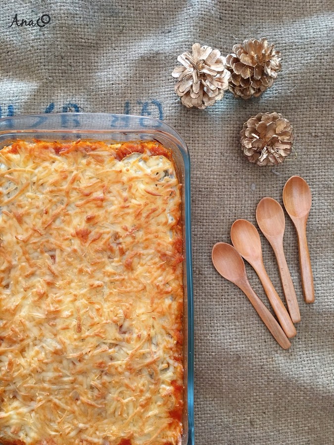 *Hay gente que añade salsa bechamel y después el queso, yo la he hecho así para evitar excesos.. Aunque si preferís podéis añadir también bechamel.