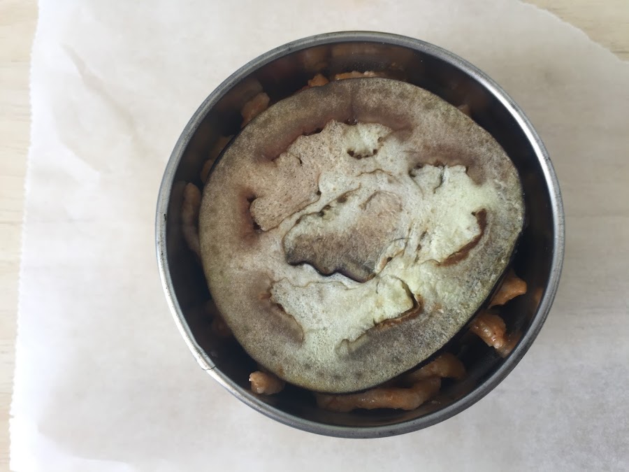 A mi me gusta poner en la base un poquito de salsa de tomate, pero si lo preferís podéis poner un poco aceite o mantequilla y pan rallado espolvoreado. Y después vamos intercalando una capa de berenjena con una capa del preparado de carne. Yo siempre sigo el siguiente patrón: berenjena-carne-berenjena-carne-berenjena