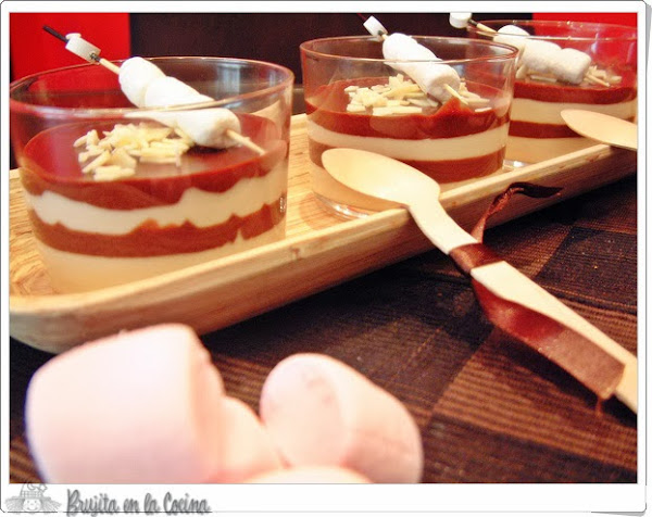 Estos vasitos fueron el postre de una quedada con mis amigas "Las Atilanas" que claro cuando quedamos a comer cada una lleva algo y a mi siempre me toca el postre, no me importa, de hecho me gusta y a ellas esta propuesta les encantó. Espero que a vosotr@s también.