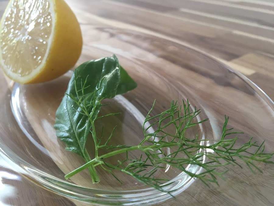 Y por último, de forma opcional, añadimos la rama de eneldo y la hoja de albahaca picadas, un poco de pimienta negra molida y una pizca de sal.