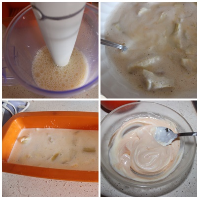 Se baten los huevos con sal y pimienta, se añade la leche, las alcachofas troceadas y las gambas en trocitos o enteras.