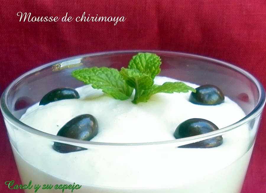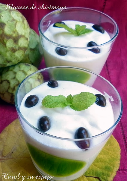 El otro día estuve en la cena de antiguas alumnas de las Concepcionistas, el cole al que fui de pequeñita. Esta cena la hacemos desde hace muchos años y la verdad que hemos formado un grupo entrañable que nos vemos año tras año y que casi ninguno fallamos, eso , sólo significa una cosa, que nos encontramos super a gusto y repetimos . Bueno , os suelto este rollo para contaros que la receta de hoy me la propuso Chiqui, uno de los incondicionales, estvimos hablando de mi blog y me dijo que el en Granada había tomado mousse de chirimoya y que estaba espectacular, así que le dije que la haría y que la subiría al blog y dicho y hecho, Chiqui!!!!! espero que lo leas y que la hagas!!!!!! y que luego me lo cuentes!!!!! jajajajaj. Y gracias por la propuesta porque tenías razón está de muerte!!!!