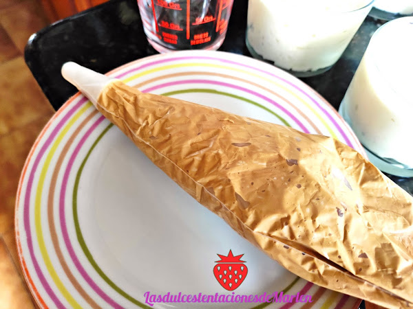 Ponemos la mousse en las copas o vasitos que vayamos a utilizar. Reservamos en el frigo, unas 2 horas.