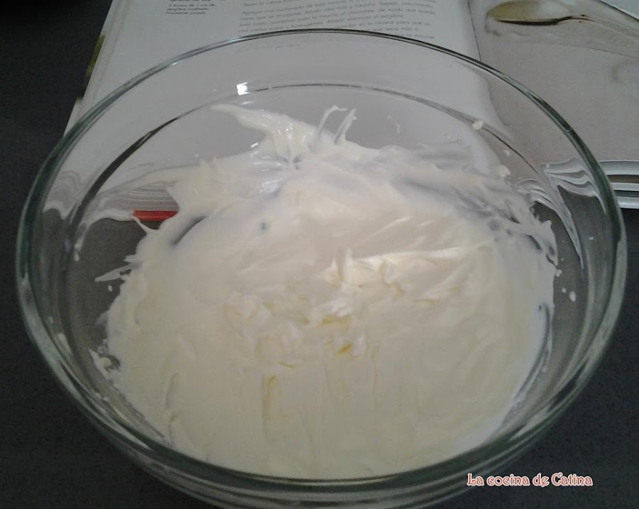 Verter la crème fraîche sobre la nata (crema de leche) y batir para que se mezclen.