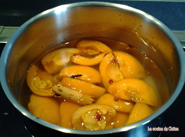 Para el coulis de níspero, pelamos los nísperos y le quitamos los huesos y los ponemos a hervir en un cazo con todos los ingredientes durante 10 minutos.