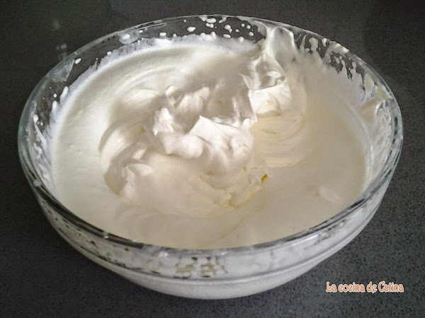 Poner la nata (crema de leche) en un cuenco bien frío (que habremos mantenido un buen rato en el congelador de nuestro frigorífico), batirlas con las varillas eléctricas hasta que esté montada. Reservar en el frigorífico hasta el momento de utilizarla.