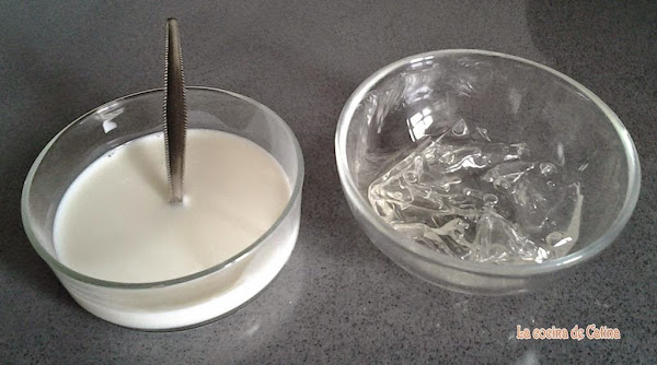 Preparación:Poner las hojas de gelatina en un cuenco con agua fría y dejarlas reposar durante 10 minutos hasta que se ablanden.