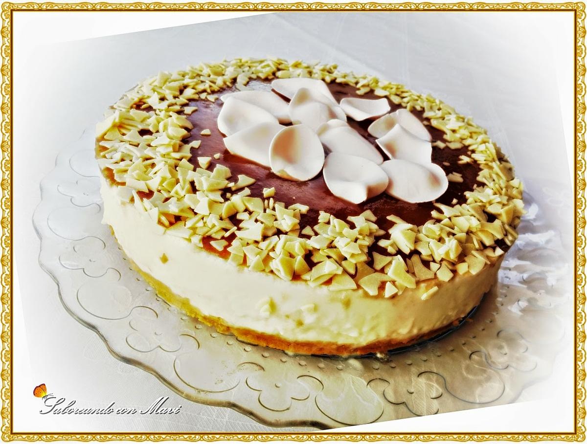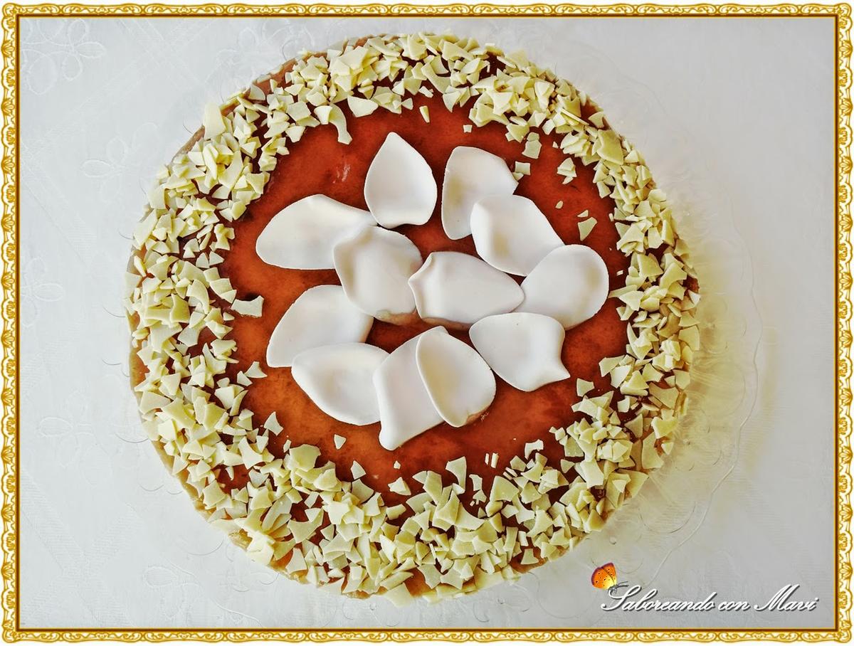 Para celebrarlo una tarta de mousse de chocolate blanco con una cobertura de mermelada de pétalos de rosas y unos pétalos de fondant que quita el sentido de buena!!! A vosotros que os parece?