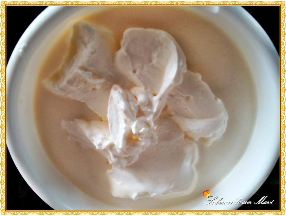 Montar los 200ml de nata (crema de leche) restantes y mezclar para que quede más aireado