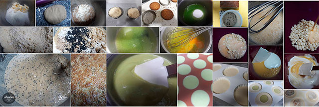 200 gr de azúcar, 40 gr de harina, 4 gr de impulsor, 120 gr de mantequilla, 200 gr de claras, 2 gr de sal, 60 gr de pasta de sésamo, 80 gr de semillas de sésamo.