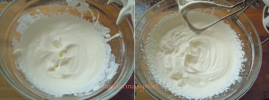 Pon la nata (crema de leche) en otro bol y haz lo mismo, móntala hasta que tenga la consistencia de la cremê.