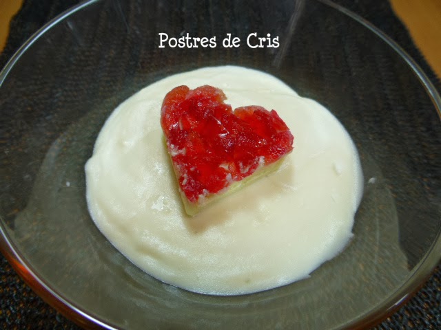 Montamos la nata (crema de leche) ( sin azúcar) con las barillas de la batidora. IMPORTANTE: la nata (crema de leche) y el bol muy fríos.
