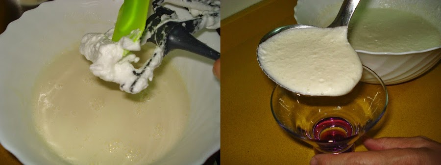 Echamos las claras montadas sobre la crema integrándolas con movimientos envolventes y lentamente con cuidado que no se bajen.