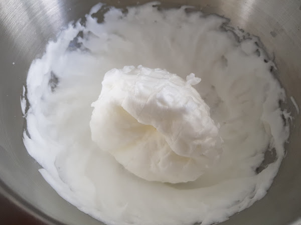 4. - Preparamos los recipientes donde vayamos a presentar la mousse, ya que una vez hecha, hay que repartirla rápidamente. Y nos ponemos con las claras... que montaremos con una pizca de sal y unas gotas de zumo de limón, hasta que estén firmes.
