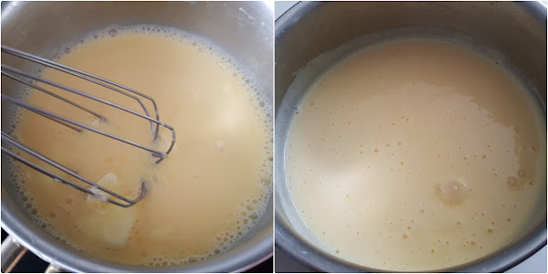 2. - Removemos con un batidor, y lo ponemos a fuego muy lento, yo lo puse en el 1 y sin para de removerlo, hasta que empiece a tomar la consistencia de una natilla.