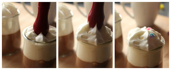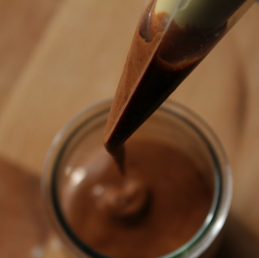 Puedes colocar la mousse en una manga pastelera y así rellenar de una forma más fácil los vasitos.
