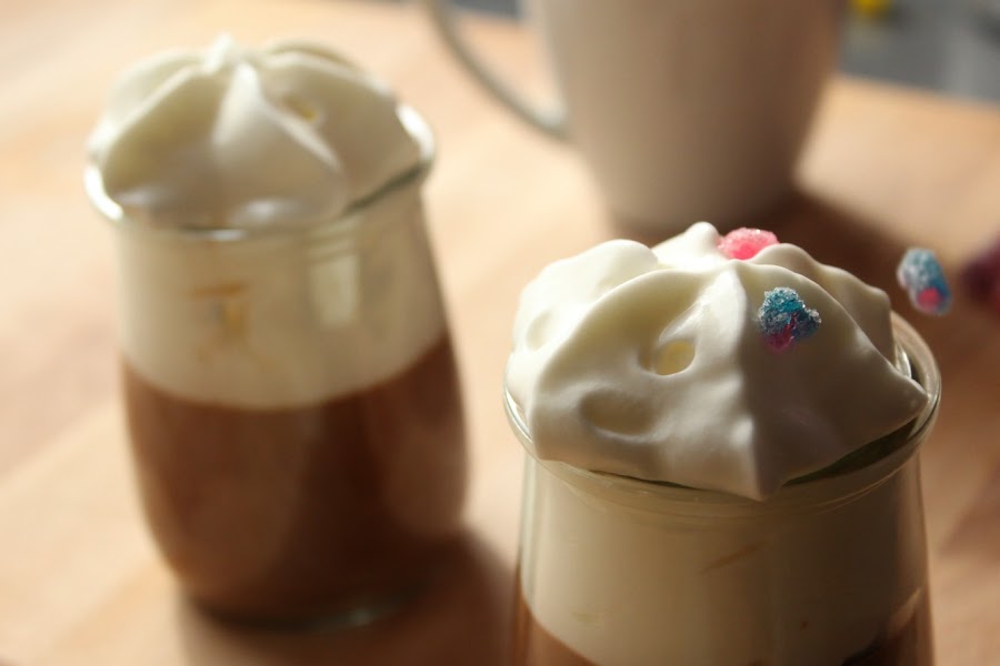 Rellénalos hasta la mitad o dependiendo de los gustos, puedes dejar más o menos espacio para la espuma. (En casa, BlanKi, viviría de coco).