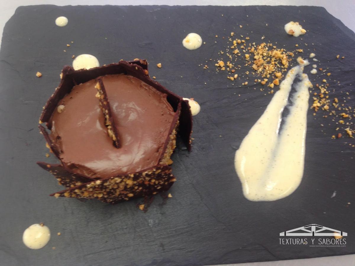Son elaboraciones que se pueden preparar con antelación. Lo único que harías en el momento es la salsa de vainilla y las tejas. Yo lo hice en unas tres horas todas las elaboraciones.