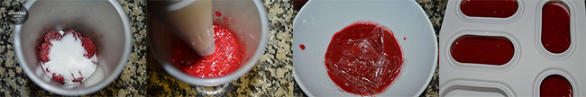 165 gr de puré de frambuesas, 32 gr de azúcar, 4 gr de gelatina.