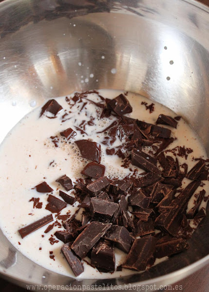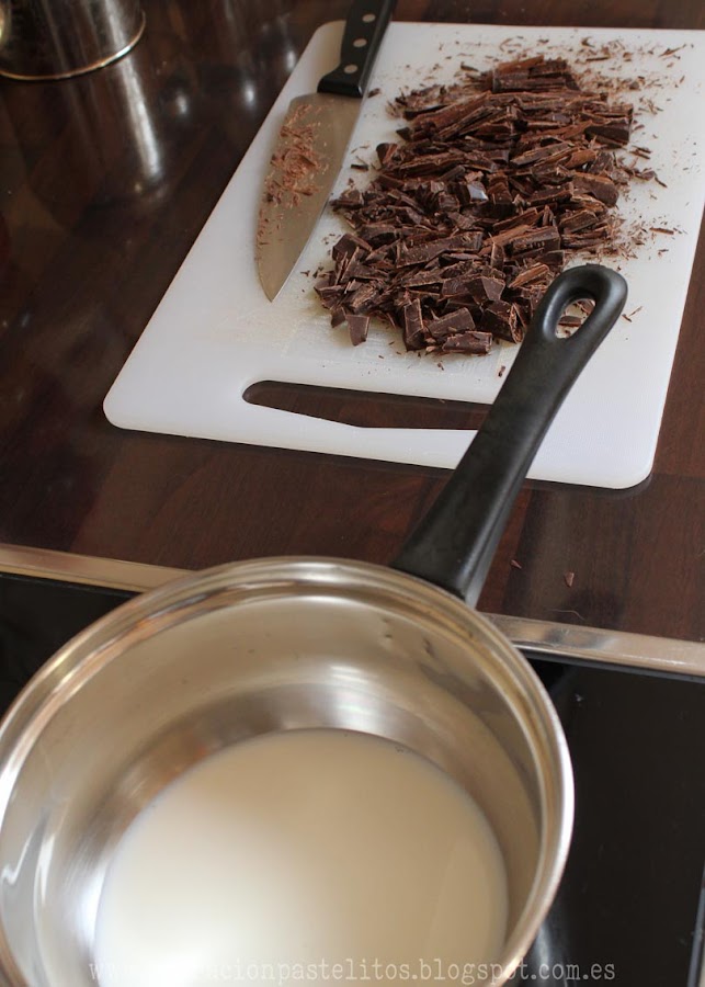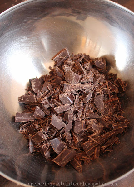 1. Primero cortamos el chocolate negro en trocitos y lo ponemos en un bol.