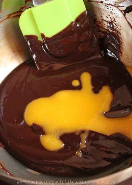 2. Derretimos el chocolate negro al baño maría y lo dejamos entibiar ligeramente.