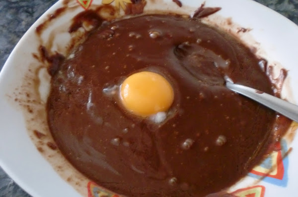 Agregamos al chocolate ya templado la mantequilla, el azucar y las yemas y removemos muy bien hasta que este todo integrado.