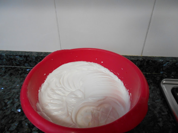 Montamos las claras a punto de nieve. Han de quedar bien firmes, yo cuando lo hago a mano con unas varillas normales en 10 min montadas. Podeis usar varillas electricas pero sino teneis... a mano como os digo se hacen bien.