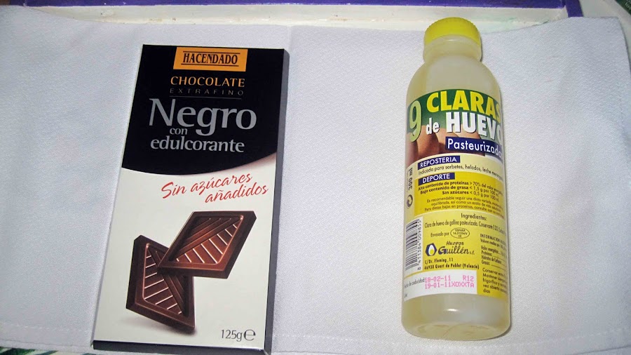 Yo he utilizado este chocolate y estas claras, ya que cuando no tengo pensado usar las yemas compro estas que van muy bien, lo he comprado en el Mercadona, no si lo venderán en algún otro sitio.